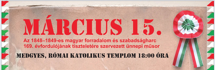 Medgyesen az ünnepi megemlékezés, immár hagyományosan az EMKE, RMDSZ, MADISZ és a történelmi egyházak társszervezésében, a római katolikus templomban lesz megtartva 2017. március 15-én, szerdán, délután 18. órai kezdettel. Az rendezvényen Kilyén Ilka marosvásárhelyi színművésznő Tűz – kiáltó szó a megmaradásért című előadása kerül bemutatásra.