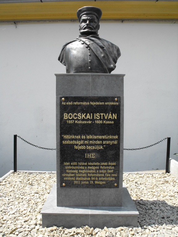 A medgyesi református templomban 2011 június 19-én részesei voltunk annak a rendkivüli istentiszteletnek, amelyet Székely Zoltán tiszteletes úr, a Genfi reformátorok Emlékműve, felszentelésének 94.évfordulója tiszteletére szervezett, s amely Bocskai István erdélyi fejedelem bronzbaöntött mellszobrának, és egész alakos festményének leleplezésével teljesedett ki.