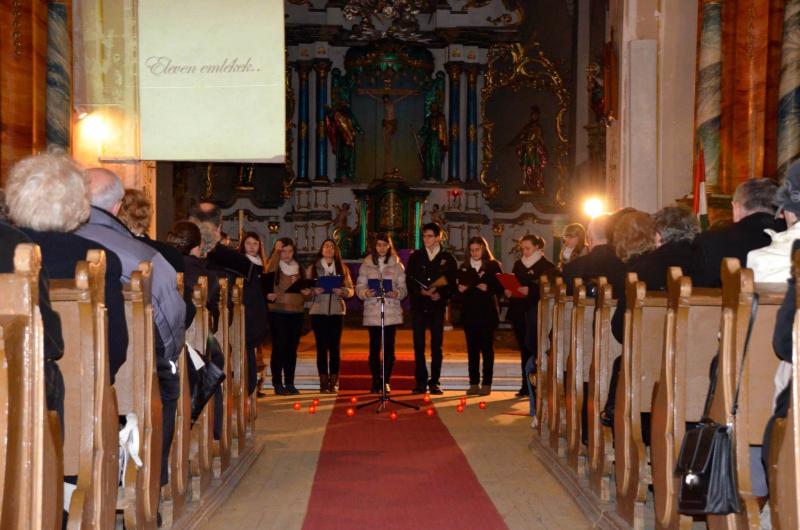 Délután Medgyesen került sor a történelmi esemény megemlékezésére, a medgyesi Szeplőtelen Fogantatás Római Katolikus plébánia templomban. Az esemény zászlófelvonulással kezdődött a zsúfolásig megtelt templomban, Ft. Babota Tibor köszöntötte az egybegyűlteket, ugyanakkor az eseményekhez híven Székely Zoltán református lelkész és Márkos Hunor Elemér unitárius lelkész szólt a gyülekezethez. A Romániai Magyar Demokrata Szövetség Szeben megyei szervezete nevében dr. Balázs Béla számolt be az esemény fontosságáról, valamint Bodor László főtitkár-helyettes tolmácsolta a RMDSZ üzenetét a jelenlevőknek. Az ünnepi műsort a medgyesi magyar diákok "Eleven emlékek" című előadása ékesített, melyet Seicean Ildikó történelem szakos tanár és Csiki Attila magyar nyelv és irodalom szakos tanár állított össze. Az est fénypontja a Báthory István Általános Iskola diákjainak a kórusa volt, ezt követően a medgyesi Magyar Vegyeskórus, a medgyesi magyar történelmi egyházak kórusaival közösen néhány Kossuth-nótát adott elő.