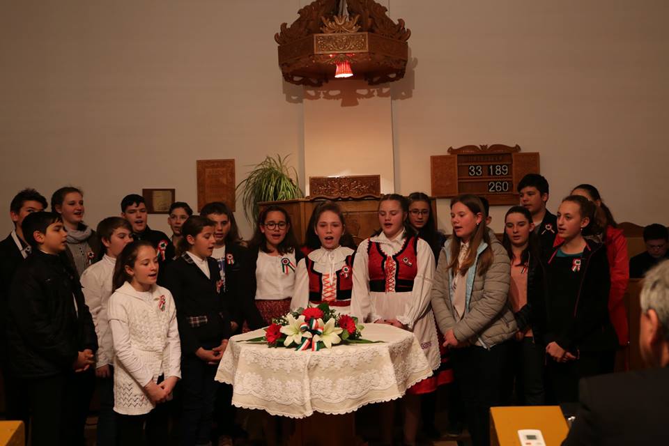 Az ünnepi műsorban újra a gyerekek kaptak főszerepet. Tirmai Anita, 5. osztályos tanuló Ábrányi Emil: Él a magyar c. versét mondta el, és őket követően a Báthory iskola gyermekeinek kórusa négy népdalt énekelt el.