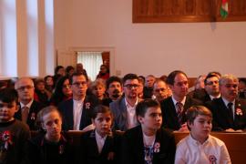 A medgyesi unitárius templom és a Millennium-ház adott otthont Medgyes városának március 15-i ünnepi megemlékezésének. Székely és magyar népviseletbe öltözött asszonyok fogadták és tűzték fel a kokárdát a közel százhúsz résztvevőnek. Zászlós bevonulással kezdődött meg az ünnepi műsor, melyben Fodor Tibor Attila kapta meg a zászló hordozásának megtisztelő feladatát. Elsőként Bíró Beátrix, a Báthory István Általános Iskola 8. osztályos tanulója Reményik Sándor: Eredj, ha tudsz című versét szavalta el.