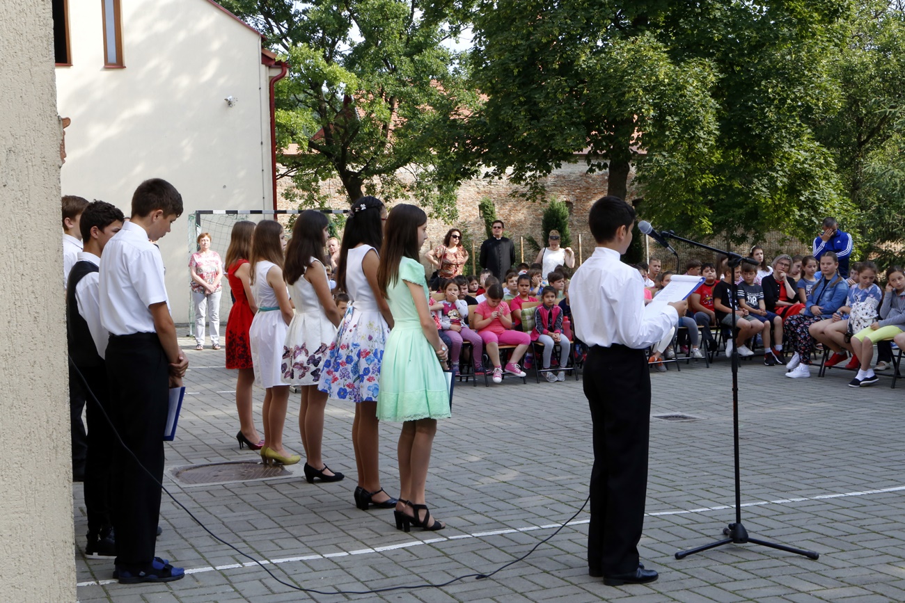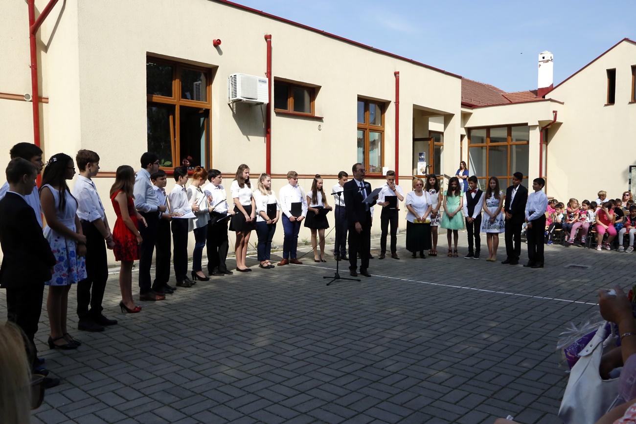 2018. június 7-én, csütörtökön délelőtt a Báthory István Általános Iskola udvarán tartott ünnepségen Béres Edit tanárnő osztályfőnök 12 nyolcadik osztályos diákja vett búcsút iskolájától. Szederjesi György igazgató szavai után a hetedik osztályosok sorakoztak fel, majd sorra felidézték az elmúlt évek legjobb pillanatait. Az ünneplők között szülők, rokonok, tanárok és a diáktársak körében is olyakor kuncogás futott végig, de könnyek is megcsillantak az emlékezés szavaitól. Az ünnepséget este bankett követte, majd minden bizonnyal a vizsgákra való készülés. Hiszen az ünnepi pillanatok után a tudásmérés és megmérettetés is vár a medgyesi magyar iskola nyolcadikosaira.