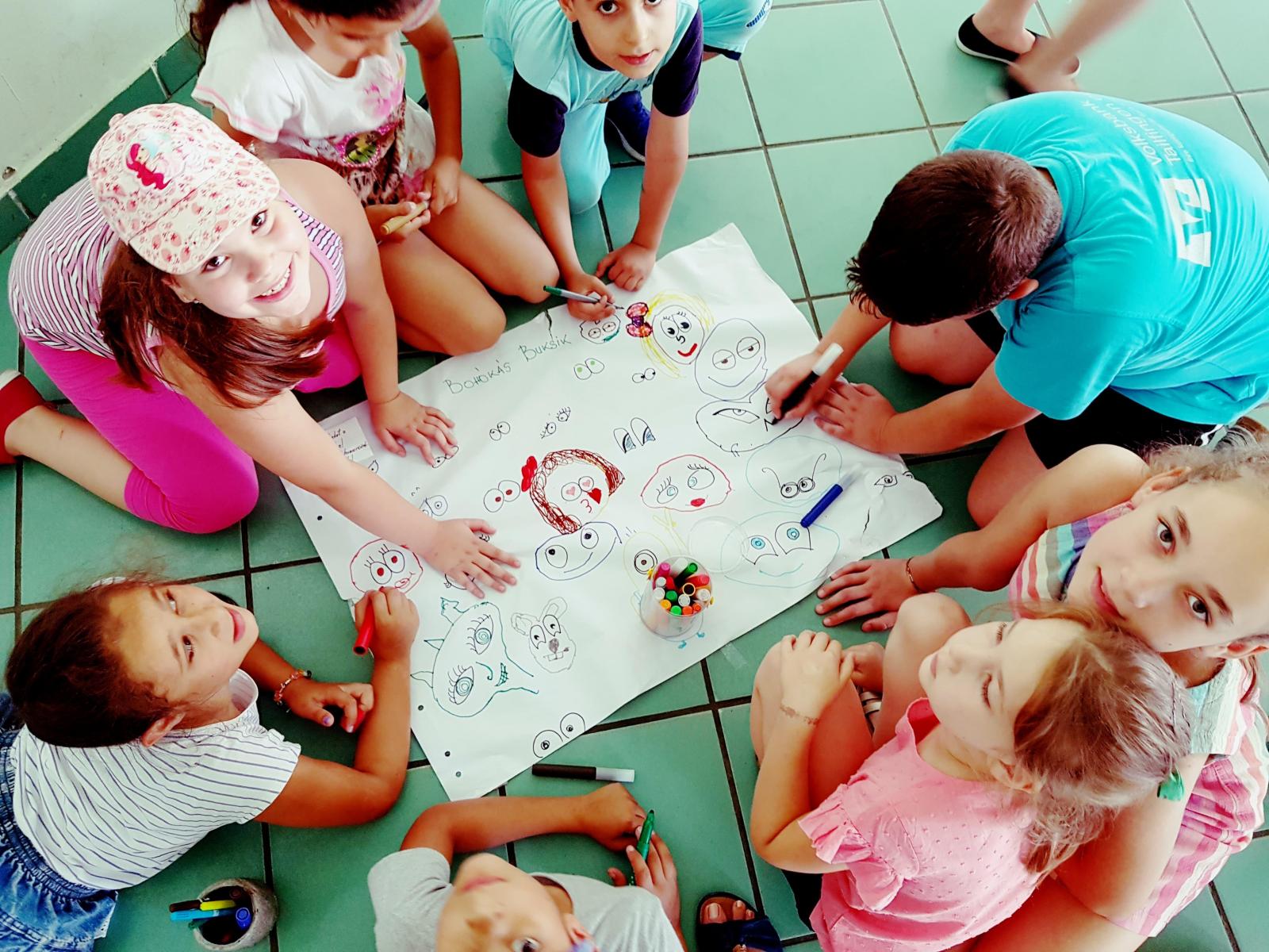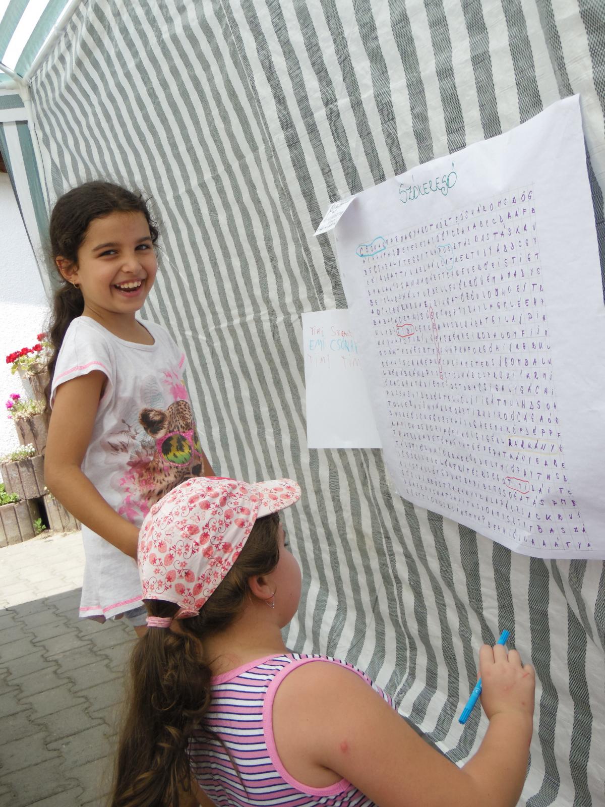 Énekeltünk, akrosztikont alkottunk, szódetektívest játsztunk, amikor egy óriási betűrácsban szavakat kerestünk, közös mesét foglamaztunk meg, ami bohókás és fantasztikus lett. Reggeli mozgásként labdákat röptettünk a szivárvány ernyőnkön, de olasz konyhamesterek is voltunk, amikor pizzát gyúrtunk egymás hátán. Társasjátékoztunk a Játszma.ro jóvoltából és pólókat festettünk egyedi mintákkal. A szombati napot szülő-gyerek-nagyszülő kirándulással töltöttük. A vásárhelyi állatkertben vettünk részt „állati jó” gyermekfoglalkozáson, amelynek jutalma, csakis a bátraknak, kígyósimogatás volt Halmágyi Ildikó foglalkozásvezető irányításában. Az Unitárcoop és a Bolyai téri Unitárius Egyházközség szervezésében pedig gyöngyékszereket, -kulcstartókat fűztünk.
