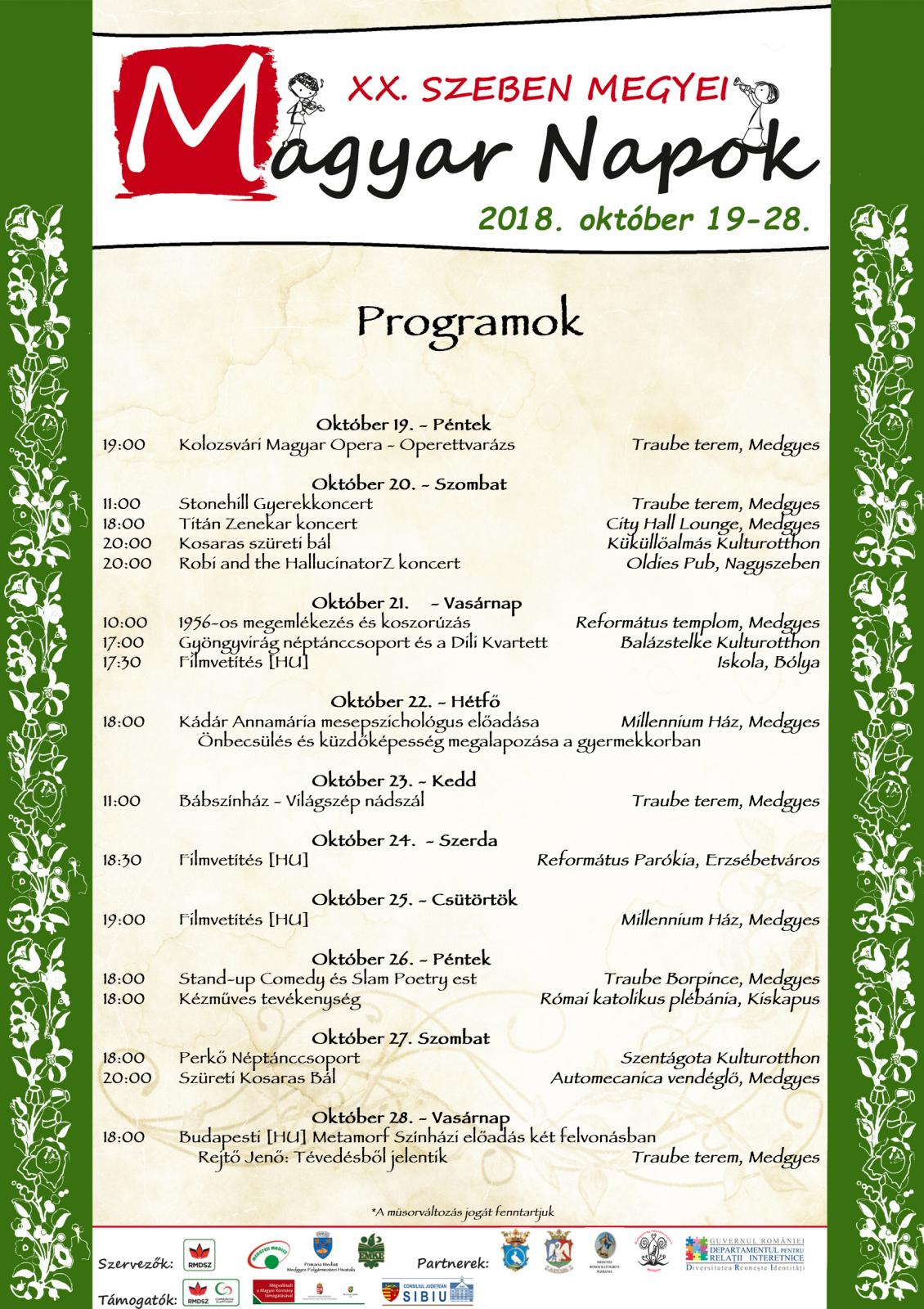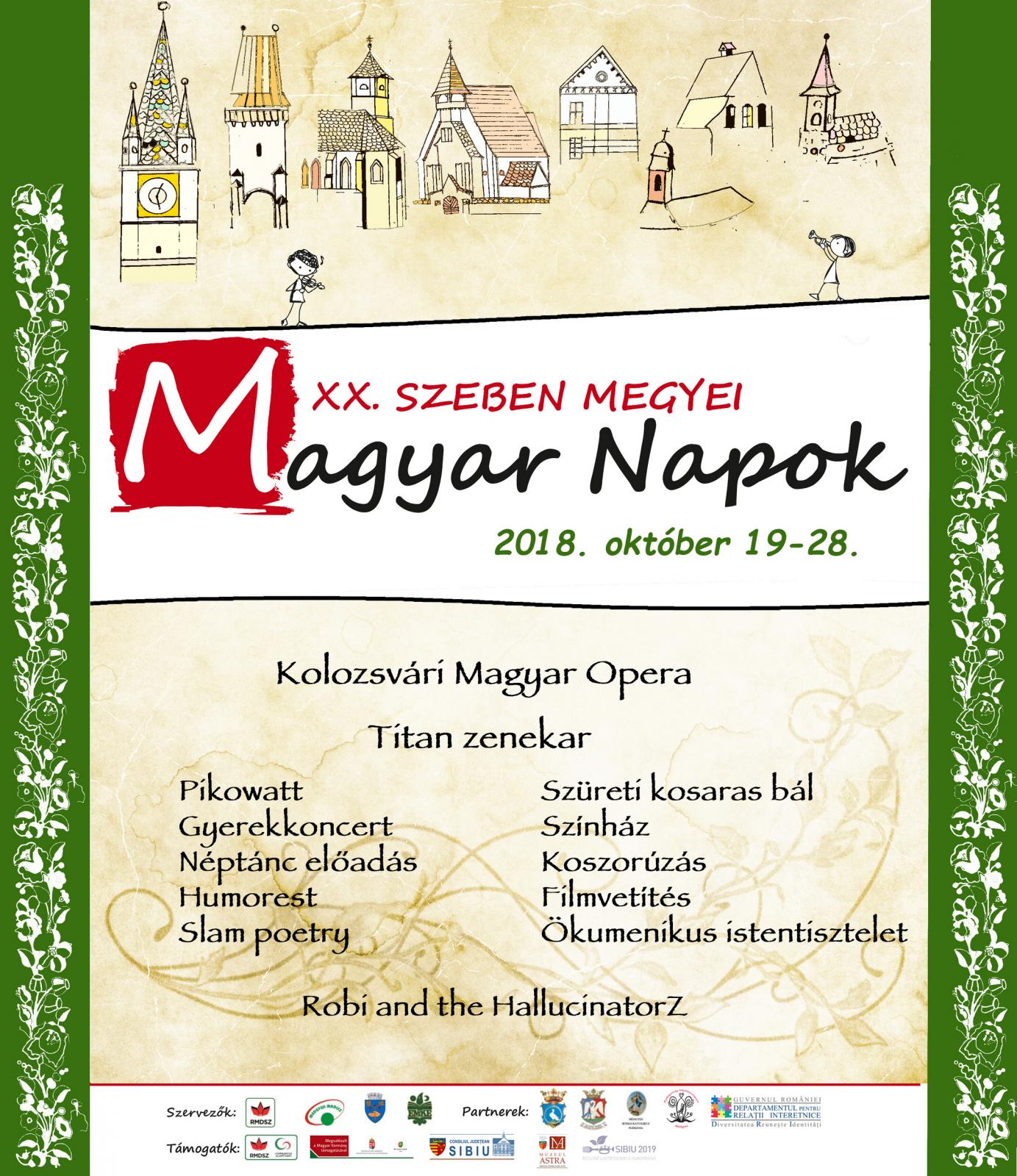 A hagyományokhoz híven idén is szervezésre kerül megyénk legnagyobb magyar rendezvénysorozata, október 19-28. között. Az esemény idei különlegessége az, hogy huszadik éve annak, hogy Szeben megye magyar lakta települései őszi időszaka eseménydús.