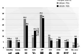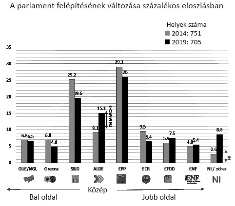 A parlament összetétele is nagyban változott. Megmaradt legerősebb pártszövetségként, de jelentősen csökkent az ereje az Európai Néppártnak (EPP) és a szociáldemokratáknak (S&D) 179, illetve 150 helyet szerezve. Harmadik helyre a liberálisok (ALDE) kerültek 107 mandátummal, míg a zöldek frakciója 70 fős lehet.Az átlagos részvételi arány uniós szinten 50,95 százalékos volt, magasabb, mint az elmúlt húsz évben bármikor.Az Európai Unióban nagyjából 426 millió választásra jogosult szavazhatott összesen több mint 15 ezer jelöltre.