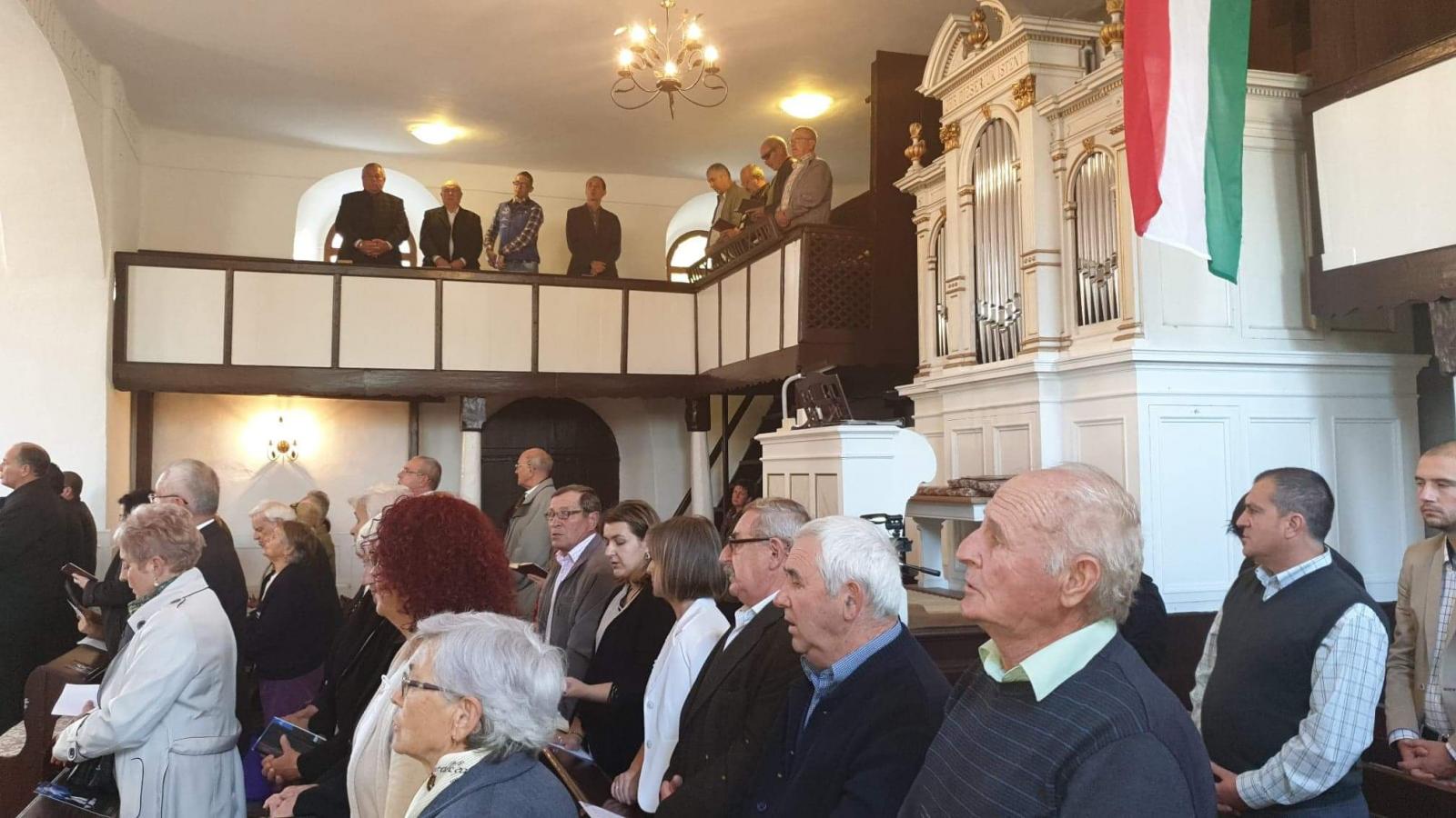 A délutáni templomfelújítási hálaadó istentiszteleten Tóth Zoltán Csaba alesperes és Horváth Mengyán Szófia lelkész, valamint Horváth Csaba lelkész szolgáltak, az igehirdetési szolgálatot Fehér Attila esperes-főtanácsos végezte. Kihangsúlyozta a templom fontosságát, központi szerepét az életünkben és egy hasonlattal élt, melynek képi üzenetét magunkkal vihettük a hétköznapokba is. Isten népe olyan, mint egy folyó. (Az igehirdetésben az Amazonas szerepelt, mint hajdan bővízű folyam.) Ez, amikor eléri az óceánt, akkor kilómétereken keresztül megváltoztatja annak vizét. A National Geographic magazin fotósorozatát hozta fel példaként, ahol látványos képek illusztrálják ezt a hatást. Mi istenhívők ugyanígy kell megváltoztassuk ennek a világnak a közegét, még akkor is, ha csak kicsiben sikerül, de lehetőségünk van a városok embertengerében változást előidézni, a szórvány kis közösségeiben, hogy a világ lássa, hogy kihez tartozunk. Ennek a folyamatnak a forrása, az ereje a templom.