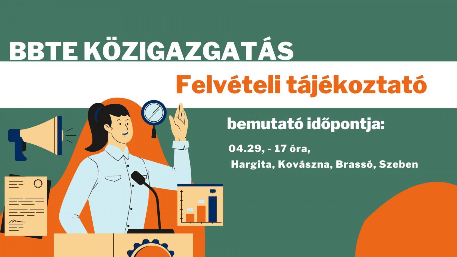 A találkozó keretein belül bemutatjuk a BBTE Közigazgatás szak oktatási kínálatát, a felvételi menetét, ugyanakkor meghívunk olyan közigazgatásban dolgozó szakembereket, akik mesélnek a lehetőségekről.