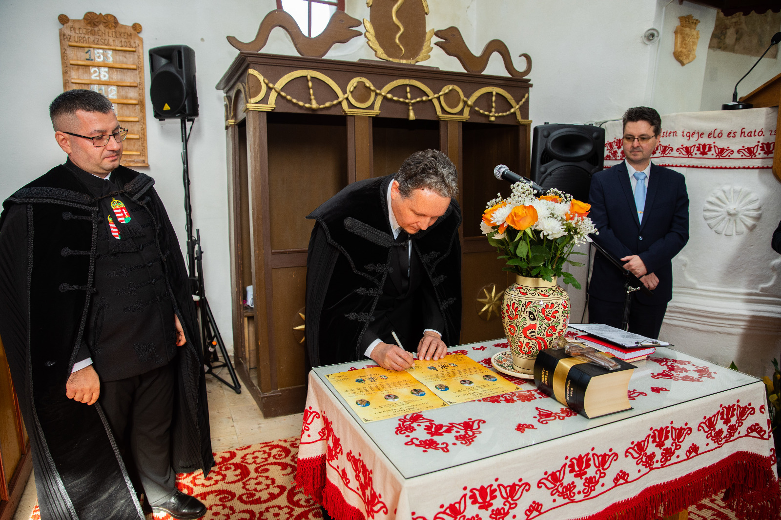 Az eseményen Benedek Zakariás parlamenti képviselő is köszöntötte az egybegyűlteket, örömét fejezve ki az új kezdeményezésért. Kőrösi Viktor Dávid vezető konzul is szólt az ünneplő közösséghez, arra biztatva a gyülekezetet, hogy mindenki vigye haza az összetartozás érzését, mert ez fog megtartani a következő 1000 évben is. A továbbiakban néhai Kuhn Zoltán lelkész unokája, Somogyi László köszöntötte a gyülekezetet, aki elmondta: „jó látni, hogy e gyülekezetben értik és élik a hívó szót, gyermekek, nők, férfiak, családosak, egyedül levők, mindannyian. A harangok százévesek, azt jelezik, hogy Istenünk hívása, szava el nem múlik, nem kopik, kitartóan velünk van.”