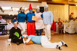második helyre a Lukács, Gál és Miklos család Hupikék Törpikék jelmezei, hamradik