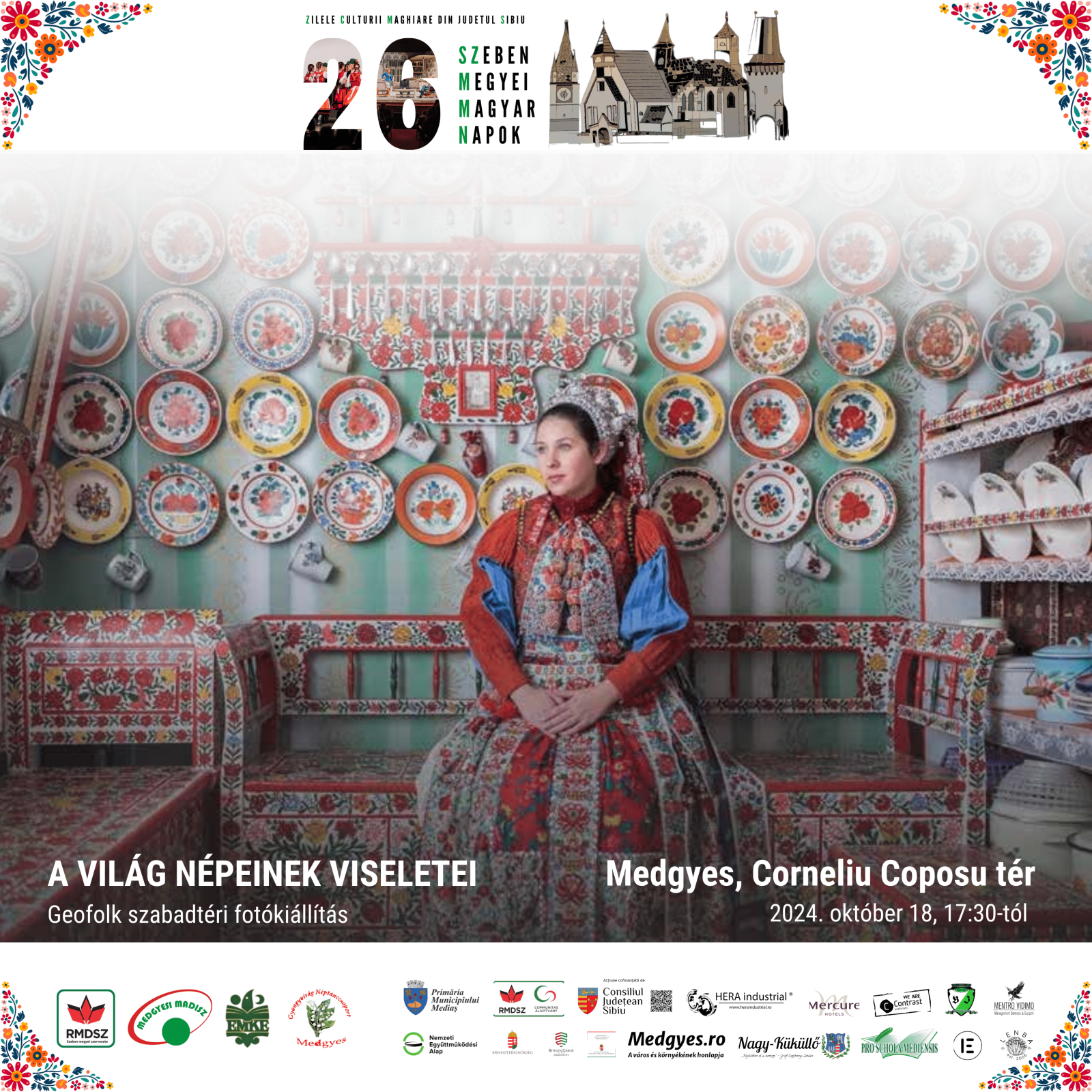 A Szeben Megyei Magyar Napok nyitórendezvényeként a Geofolk kiállítás érkezik Medgyesre. A projekt célja, hogy felkutassa és megörökítse a még létező hagyományos ünnepi öltözeteket, különös figyelmet fordítva a Kárpát-medencei magyar népviseletre. A kezdeményezés mögött az a szándék áll, hogy a helyi hagyományokat és kulturális örökséget megőrizzék és továbbadják az új generációknak. A projekt már több mint 62 ország, 260 nemzetének 3600 ünnepi öltözetét dokumentálta.