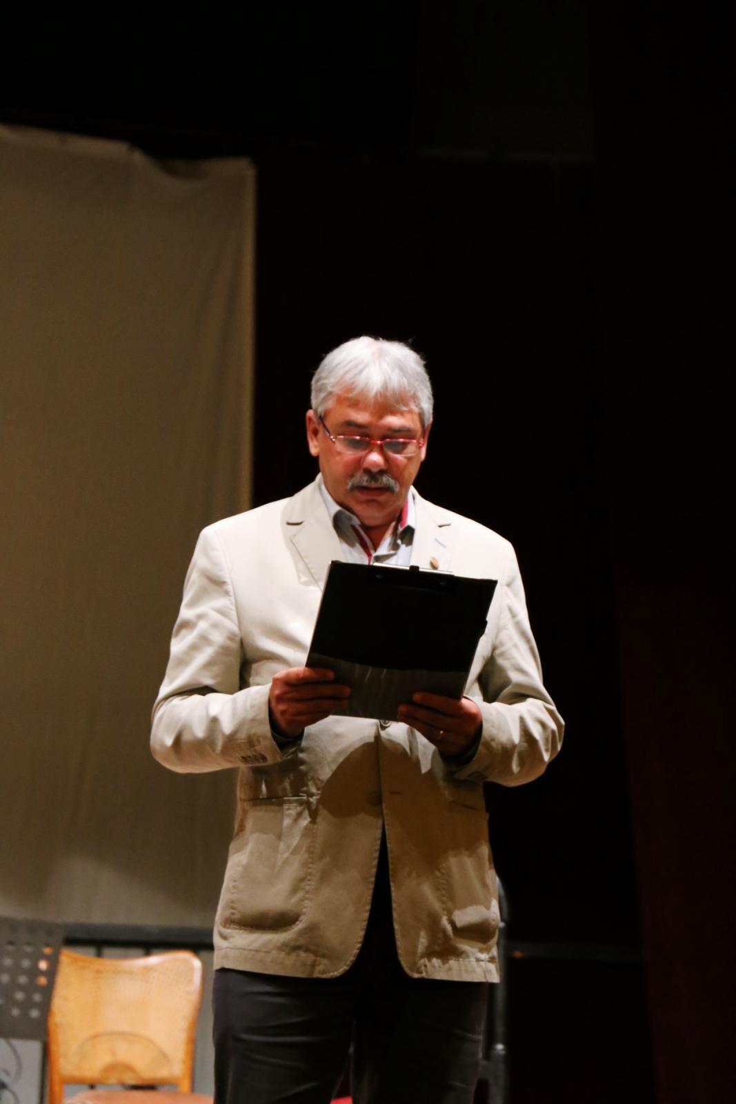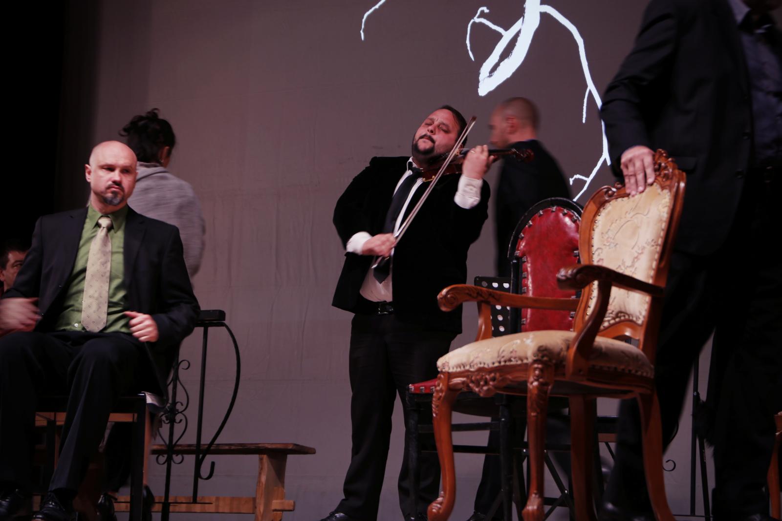 A nagyváradi Szigligeti Színház színészei nem kisebb feladatra vállalkoztak, mint hogy a szinte statikus színpadi jelenlét mellett, a százötven évvel ezelőtti nyelvezetet hűen követve prózai est formájában adják át a kétszáz éve született Arany János gondolatait.