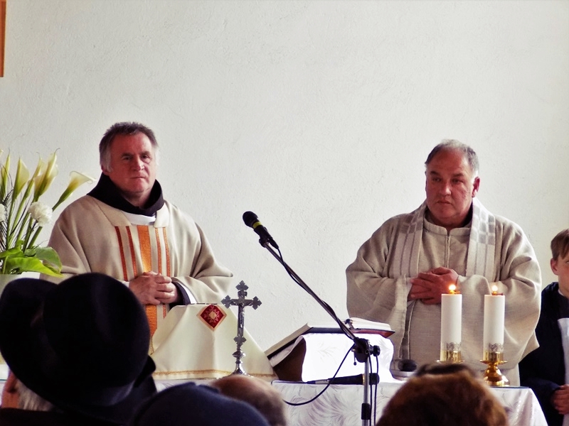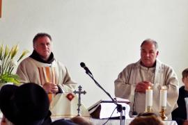 Csaba testvér prédikációjában a Szent György-i bátorságra tanított, egy olyan erényre, amelyre mindennap szükségünk van, és ami csöppet sem törpülhet el hitünk és szeretetünk mellett. Megkérte a jelenlévőket, hogy töprengjenek el azon, hogy Jézus is ebből az erényből merített, amikor karácsony estéjén közénk mert jönni, vagy amikor virágvasárnap fényes nappal be mert vonulni Jeruzsálembe, s bár az Olajfák hegyén is tudta mi vár rá, mégsem menekült el. Csaba testvér gondolatmenetét azzal a kívánsággal zárta, hogy szeretné, ha ez a Jézusi vonás felragyogna a mi szívünkben is, ha mernénk bátrak lenni és hiányosságainkból előnyt kovácsolni, ha ki mernénk dobni a halászhálónkat, ha szembe mernénk nézni az ezernyi, apró, bennünk csapongó sárkánnyal, ha meg mernénk munkálni földjeinket, és ha mernénk gyermeket vállalni…