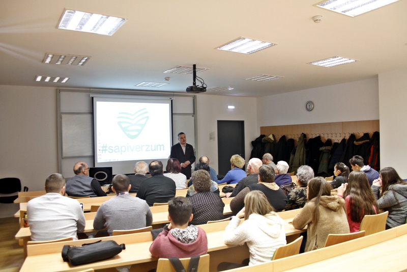 A medgyesi zarándokokat dr. Murádin János Kristóf egyetemi tanár fogadta a Sapientia Erdélyi Tudományegyetem épületében, ahol vetített képes előadásban mutatta be az 1944 utáni történéseket, kiemelve az erdélyi magyarságot ért veszteségeket, amely által a kolozsvári és tordai magyarok lélekszáma megtizedelődött. Dr. Murádin János Kristóf még egyetemi hallgatóként szembesült azzal, hogy az 1944-es szovjet deportálások témája gyakorlatilag feldolgozatlan. Több éves munkájának köszönhetően nyílt meg tavaly ősszel az a tárlat, amely a fogolytáborból hazaérkezők emléktárgyait mutatja be a látogatóknak. Az érdekfeszítő előadás után dr. Murádin János Kristóf a medgyesieknek egy még érdekesebb tárlatvezetést tartott: fényképek, kézzel festett cigarettatartók, magyar címeres csajkák, színes rajzokkal díszített levelek és üdvözlőlapok, különböző tábori szuvenírtárgyak fogadták a távolról érkező látogatókat. Szinte minden egyes kiállított tárgy történetét megismerhették a medgyesi zarándokok, amely által megelevenedtek a kényszermunkatáborok szomorú hétköznapjai, a messze távolban töltött ünnepek reménysugarai. A kiállítást látni kell, a donyecki szénbányából származó lapátot („Sztálin szíve”) meg kell fogni, a katonai faláda mélyére kell nézni… A hideg barakkban egy pokróc alatt édesapáddal, aki hajnalra visszaadta lelkét a Teremtőnek – mai ember számára elképzelhetetlen szenvedésekről beszélnek eme tárgyak.