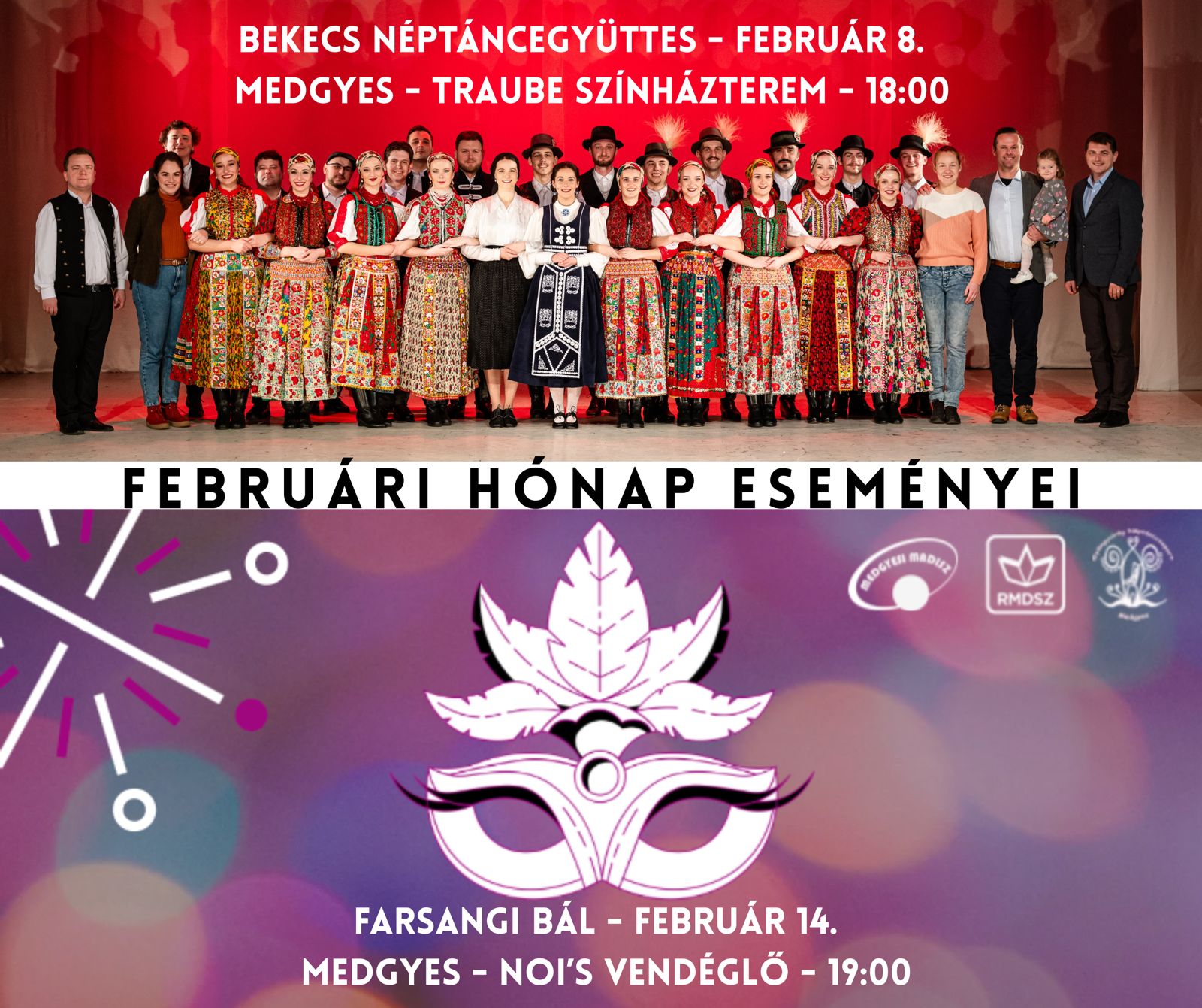 Február 8-án, vasárnap 18 órától a medgyesi Traube Színházterem ad otthont a „Táncolva öröklődik” című folklórelőadásnak. A Bekecs Táncszínház autentikus produkciója a Kárpát-medence gazdag táncos örökségén vezeti végig a közönséget: Dél-Alföldtől Kalotaszegig, Felcsíktól Szatmárig elevenednek meg a különböző tájegységek jellegzetes stílusai. Az élő tánc, ének és zene nemcsak bemutatja, hanem át is érezteti azt az örökséget, amely generációról generációra, táncolva adódik tovább.