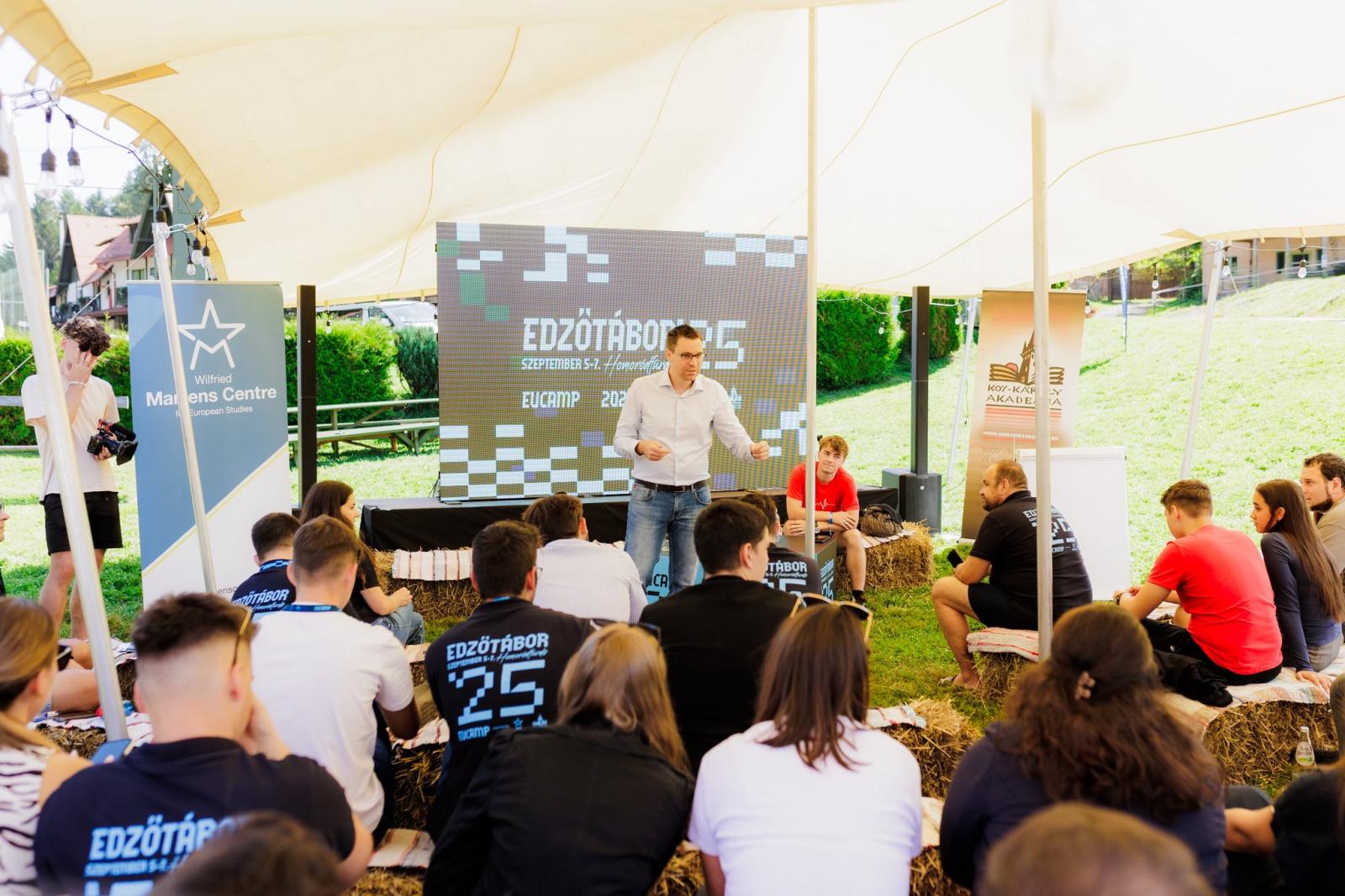 Pénteken kora estére érkeztünk meg, és a tábor rögtön erős kezdéssel indult: Kelemen Hunor szövetségi elnök tartott előadást „35 éve a nemzetpolitikai bokszringben – 35 éves az RMDSZ” címmel. Őszintén mesélt arról, hogyan működik a politika belülről, a parlamentben és a pártban egyaránt. Ezután következett a hagyományos „Muti, mit eszel!” est, ahol minden megye fiataljai saját vidékük ízeit mutatták be. A házi finomságok és a jókedv hamar közös nevezőre hoztak bennünket, az este pedig egy felszabadult bulival zárult.