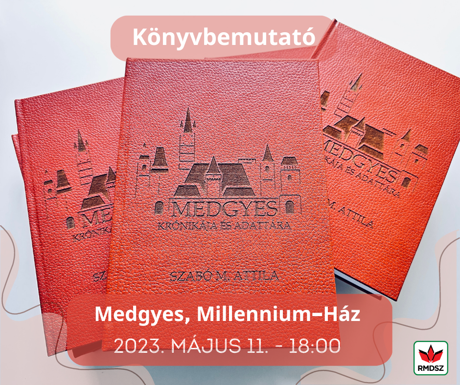 Könyvbemutatóra hívunk és várunk mindenkit a medgyesi Millennium-Házba, ahol 2023. május 11-én, csütörtökön 18:00 órától kerül bemutatásra Szabó M. Attila "Medgyes Krónikája és Adattára" című könyve. A könyv bemutatóján Csíki Attila, Balázs Béla, Orosz Csaba és Gazdag Sándor szólnak majd a könyvről és méltatják azt. Az esemény után lehetőség nyílik a könyv vásárlására is.