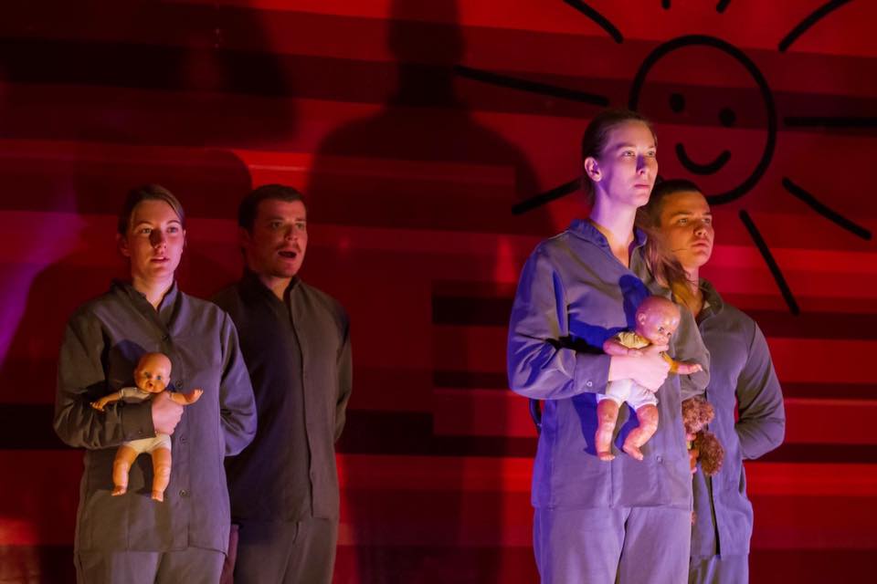 Az anyaméhben, születésének értelméről elmélkedő csecsemő, a jobb megélhetés reményében külföldi vendégmunkásként dolgozó család magára hagyott gyereke, az interneten ismerkedő fiatal pár vagy a folyamatos tanügyi változásoktól befásult oktatók megjelenített képe, mindenkit egyaránt elborzasztott, még annak ellenére is, hogy tisztában voltunk a jelenetek igazságtartalmával. Talán azért mert nem szoktunk hozzá, hogy kifogásokkal teletűzdelt napjainkat rivaldafénybe állítva, görbe tükröt tartson elénk egy rendező, jelen esetben Fazekas Misi. Kérdések sokasága lengte körül a nézőteret, olyan kérdéseké amelyeket önmagunk felé intéztünk egy-egy jelenet végeztével.