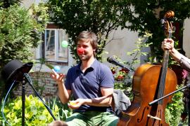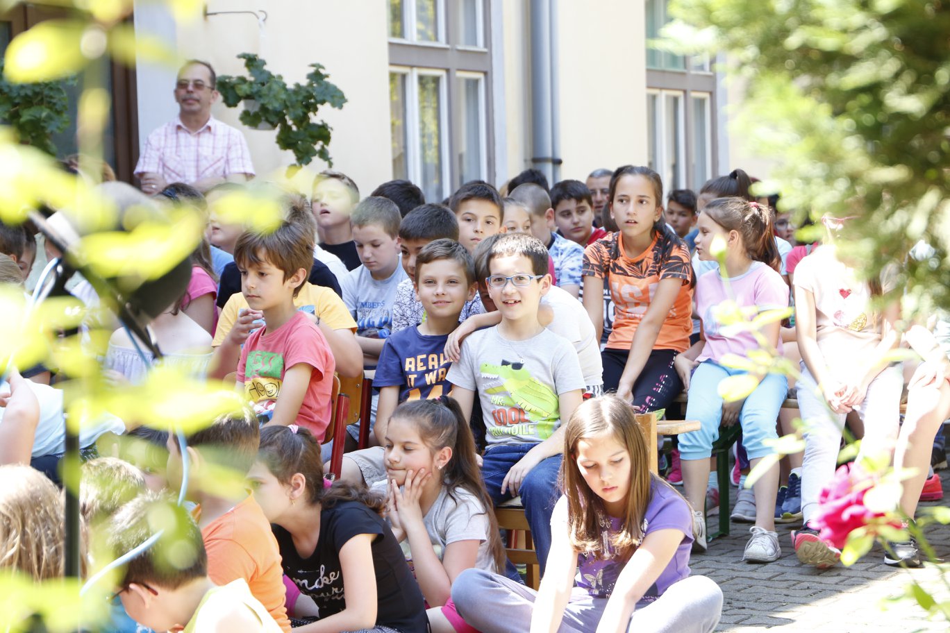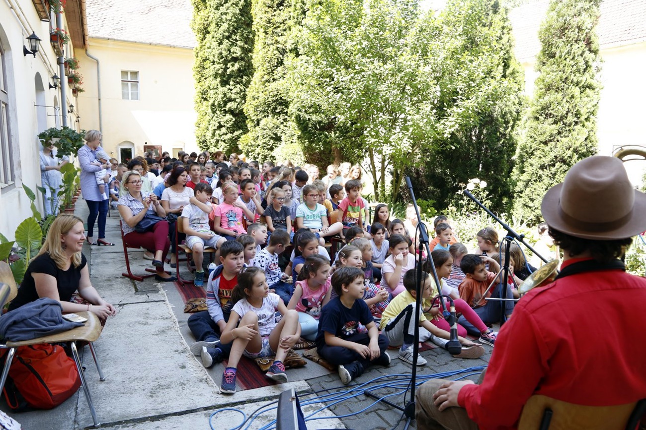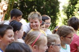 Pénteken délelőtt a plébániaudvarba várták a báthorys diákokat és tanáraikat, akiknek elmesélték többek között a szomorú szerelmes Jancsi bohóc történetét, kipróbálták a zugligeti libegőt és a klottgatyájuk foltját is közös erővel felfedezték fel a diákokkal.