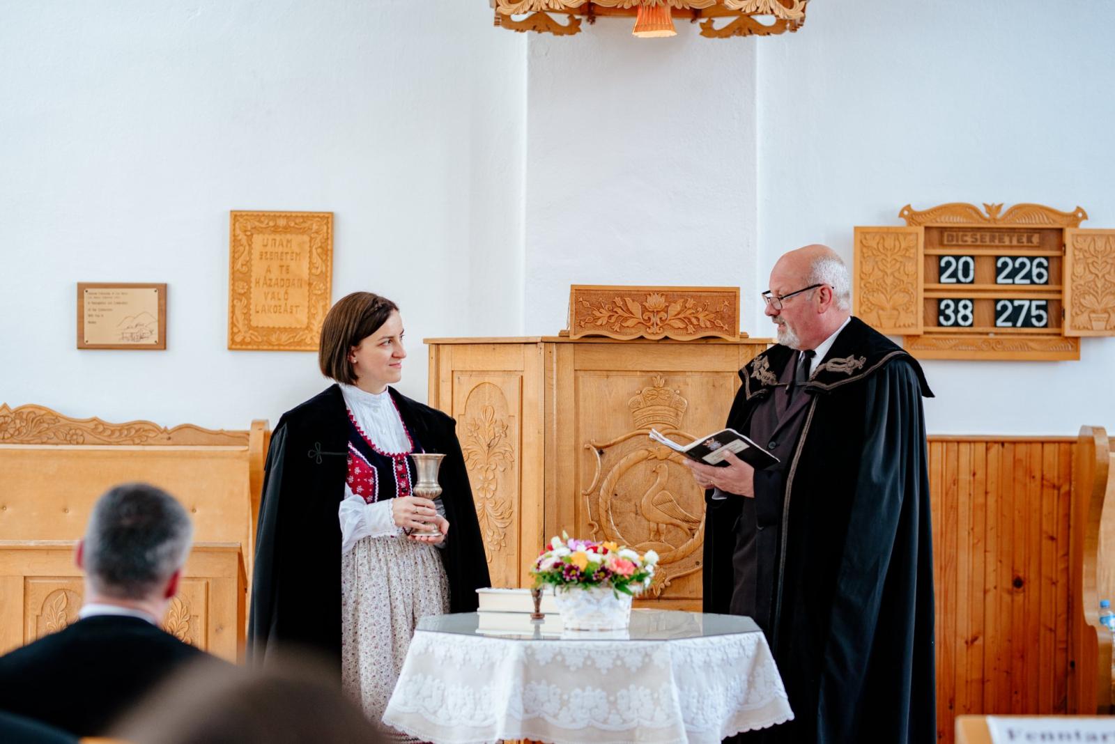 A főtisztelendő püspök úr Mt 16, 24-26 alapján a lélekkel teli élet fontosságára és gazdagságára buzdította a gyülekezetet, arra az életre, amely belülről épül fel és szilárdul meg. Ez adhatja meg a lélekben megnyert és megélt világ elmúlhatatlan csodáját. A szószéki szolgálatok után Szentgyörgyi Sándor esperes úr iktatta be a lelkészt, átadva a templom kulcsát, a Bibliát, a kelyhet és az egyházközség pecsétjét, buzdítva a lelkésznőt, hogy a gyülekezet szolgálatában szeretettel és lelkiismeretesen legyen jelen.