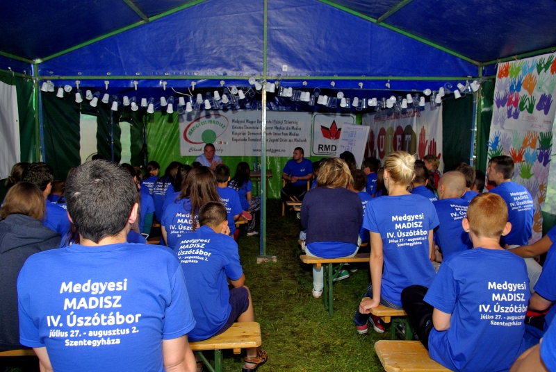 „A Hargita megyei Szentegyházán negyedik alkalommal táboroznak Szeben megyei magyar fiatalok. Az úszótábor hiánypótló, hiszen ez az egyetlen olyan esemény, amely megyei szinten összehozza a magyar fiatalokat olyan felvállalt céllal, mint a sport általi közösségépítés. Idén hatvan résztvevőnk van három megyéből, a játékos ismerkedés és kikapcsolódás mellett különböző területek szakemberei, szervezetei is bemutatkoznak a tábor idején – tájékoztatott Balázs Botond szervező, a Medgyesi MADISZ elnöke és Fazekas Attila, az RMDSZ Szeben megyei ügyvezető elnöke.