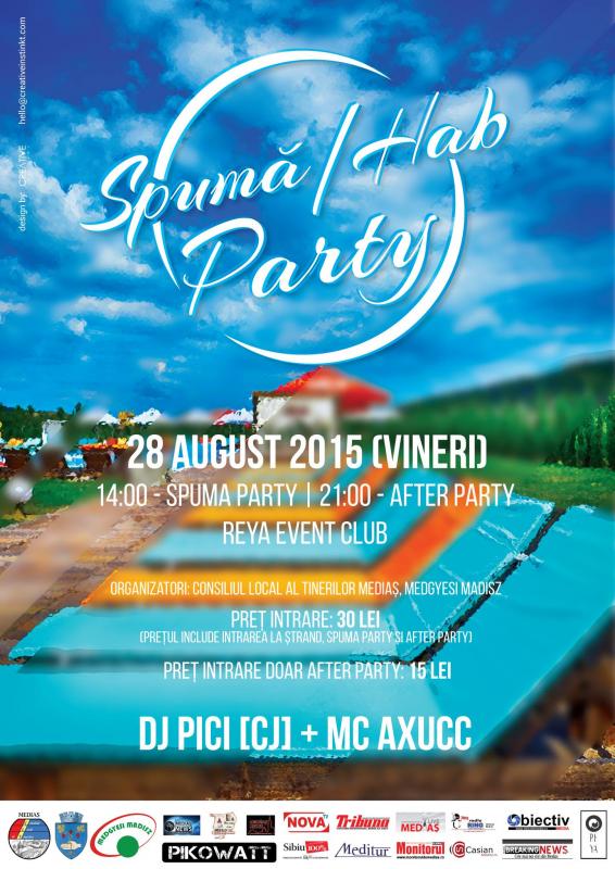 A hangulatot es a jókedvet DJ Pici biztosítja, egy kolozsvári DJ, aki az egész partyt egy PIKOWATT stílusban fogja fokozni. Változatos programokkal és különböző játékokkal várjuk az érdeklődőket, este pedig 21:00 órakor sor kerül egy after partyra, amelyen búcsút veszünk a 2015 nyarától. A jegy ára 30 lej, amely tartalmazza az egész napi strandolást, a Hab-Partyt és az afterpartyt, de ha csak az afterpartyn szertetnél részt venni akkor a belépő ára 15 lej. Asztalt foglalni az esti bulira a következő telefonszámon lehet: 0759092895