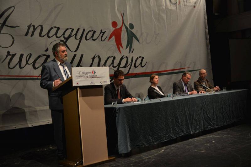 Második pontban, a sikeres közösségépítő projektek bemutatására kérte fel Kovács Péter a megívott szervezetek képviselőit. A Medgyesi MADISZ tevékenységét Balázs Botond, a szervezet elnöke mutatta be. Előadásának címe: Az ifjúság szerepe a magyar közösségben, melynek szövegét itt olvashatják: