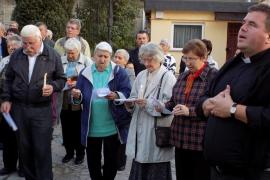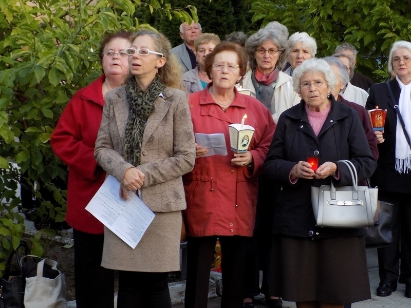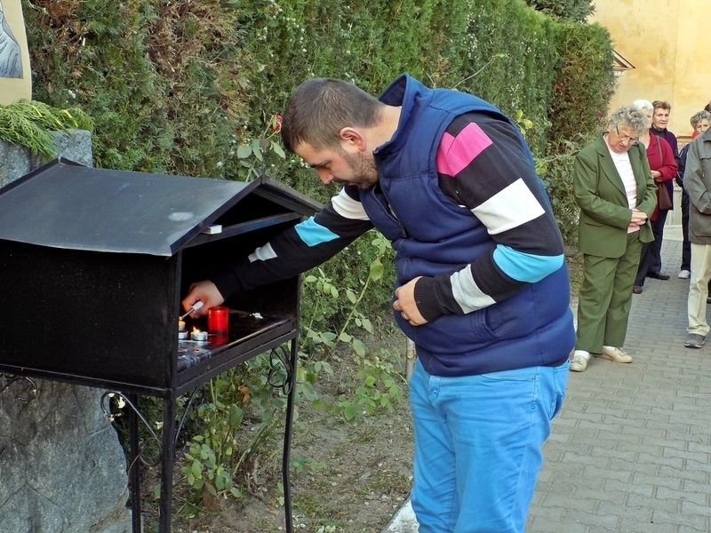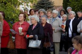 A szentmise végén a templom előtti téren gyertyákat gyújtottak Áron püspökre emlékezve.