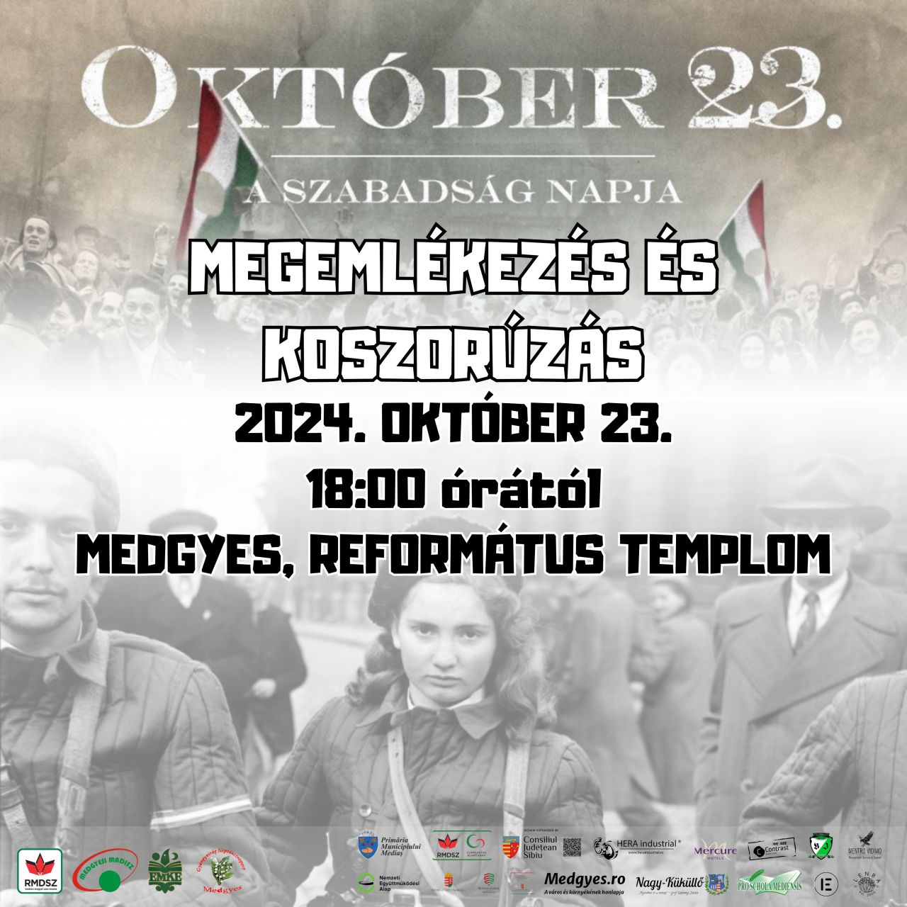 Október 23-án Medgyesen ünnepi megemlékezést tartanak az 1956-os forradalom tiszteletére, ahol a résztvevők főhajtással tiszteleghetnek a szabadságért és hazáért küzdő hősök előtt. A megemlékezés kiemelt része a koszorúzás lesz, amely a református templom udvarán felállított kopjafánál zajlik. A jelenlévők közösen emlékeznek meg az 1956-os forradalom áldozatairól, és fejet hajtanak emlékük előtt.